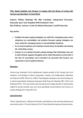 Social isolation and humour in coping with the stress of living with venous leg ulceration: A case study.