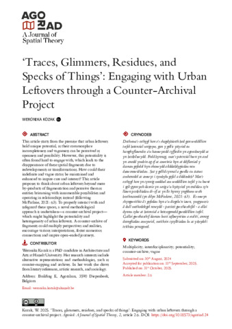 ‘Traces, glimmers, residues, and specks of things’: engaging with urban leftovers through a counter-archival project.