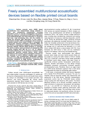 Freely assembled multifunctional acoustofluidic devices based on flexible printed circuit boards.