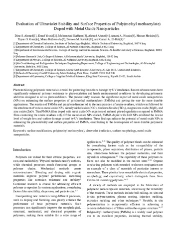 Evaluation of ultraviolet stability and surface properties of poly(methyl methacrylate) doped with metal oxide nanoparticles.