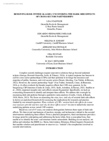 Removing rose-tinted glasses: Uncovering the dark side effects of cross-sector partnerships.