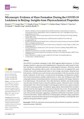 Microscopic evidence of haze formation during the COVID-19 lockdown in Beijing: Insights from physicochemical properties.