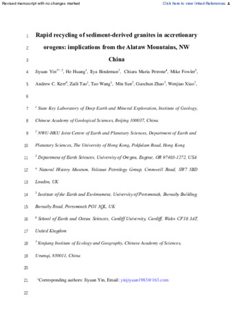 Rapid recycling of sediment-derived granites in accretionary orogens: Implications from the Alataw Mountains, NW China.
