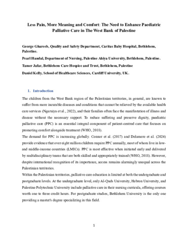 Less pain, more meaning and comfort: the need to enhance paediatric palliative care in the West Bank of Palestine [Editorial].