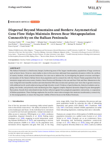 Dispersal beyond mountains and borders: asymmetrical gene flow helps maintain brown bear metapopulation connectivity on the Balkan Peninsula.