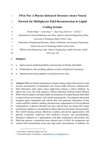 | Zhang, Chaobo, Jiang, Lizhe, Yang, Zhao, Yan, Kun and Yan, Jun 2026. PISA-Net: A physics-informed structure-aware neural network for multiphysics field reconstruction in liquid cooling systems. Applied Thermal Engineering 286 , 129347. 10.1016/j.applthermaleng.2025.129347 |