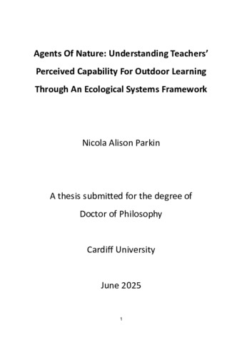 Agents of nature: understanding teachers’ perceived capability for outdoor learning through an ecological systems framework.