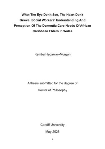 What the eye don't see, the heart don't grieve: social workers' understanding and perception of the dementia care needs of African Caribbean elders in Wales.