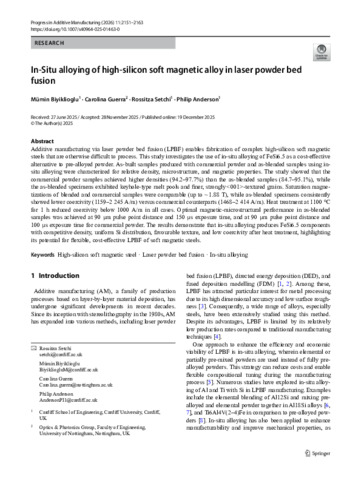 In-situ alloying of high-silicon soft magnetic alloy in laser powder bed fusion.