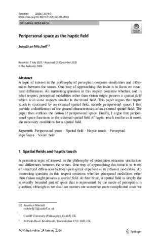 Peripersonal space as the haptic field.