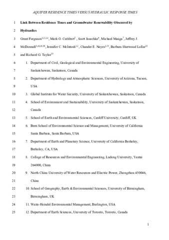 Ferguson, Grant, Cuthbert, Mark O. ORCID: https://orcid.org/0000-0001-6721-022X, Jasechko, Scott, Manga, Michael, J.McDonnell, Jeffrey, McIntosh, Jennifer C., Noyes, Chander E., Lollar, Barbara Sherwood and Taylor, Richard G.