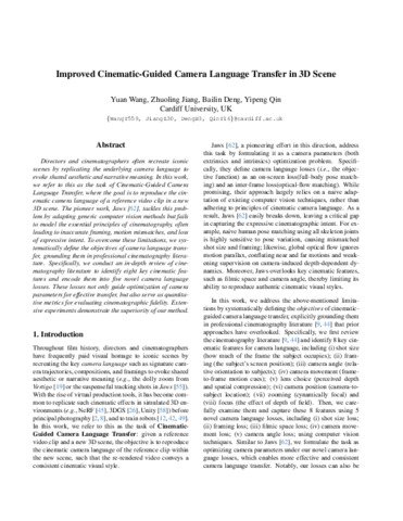 Improved cinematic-guided camera language transfer in 3D scene.
