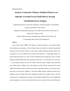 Analysis of ammonia–methane stabilized flames in an optically accessible porous media burner through chemiluminescence imaging.