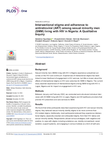 Intersectional stigma and adherence to antiretroviral (ART) among sexual minority men (SMM) living with HIV in Nigeria: A Qualitative Inquiry.