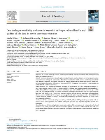 Dentine hypersensitivity and associations with self-reported oral health and quality of life data in seven European countries.