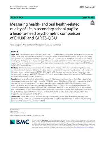 Measuring health- and oral health-related quality of life in secondary school pupils: a head-to-head psychometric comparison of CHU9D and CARIES-QC-U.