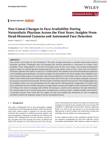 Non-linear changes in face availability during naturalistic playtime across the first years: Insights from head-mounted cameras and automated face detection.