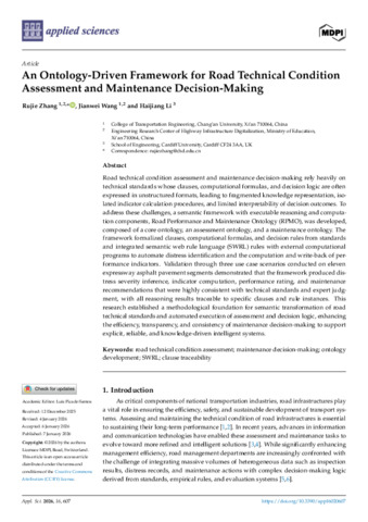 An ontology-driven framework for road technical condition assessment and maintenance decision-making.