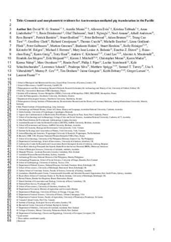 Stanton, David W. G., Manin, Aurelie, Evin, Allowen, Tabbada, Kristina, Linderholm, Anna, Drinkwater, Rosie, Thalmann, Olaf, Ng'ang'a, Said I., Amano, Noel, Anderson, Atholl, Barnett, Ross, Barrière, Patrick, Bedford, Stuart, Bellwood, Peter, Brumm, Adam, Tien, Trung Cao, Clark, Geoffrey, Crooijmans, Richard, Cucchi, Thomas, Eusebio, Michelle S., Girdland-Flink, Linus, Galbusera, Peter, Groenen, Martien, Hakim, Budianto, Hawkins, Stuart, Heiniger, Holly, Helgen, Kristofer M., Herrera, Michael J., Bolunia, Mary Jane Louise A., Dizon, Eusebio Z., Hung, Hsiao-chun, Greig, Karen, Hunt, Terry, Kitchener, Andrew C., Lee, Carol, Macdonald, Alastair A., Megens, Hendrik-Jan, Meijaard, Erik, Mitchell, Kieren J., Moran, Christopher, Mudar, Karen, Nidup, Karma, Oxenham, Marc, Pem, Rinzin, Piper, Philip J., Scarsbrook, Lachie, Schachtschneider, Kyle, Schook, Lawrence, Silva, Pradeepa, Spriggs, Matthew, Turvey, Samuel T., Viðarsdóttir, Una S., Cox, Murray P., Denham, Tim, Gongora, Jaime, Dobney, Keith, Larson, Greger and Frantz, Laurent