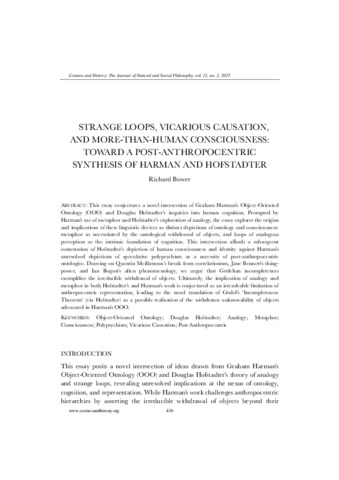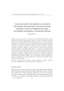 Strange loops, vicarious causation, and more-than-human consciousness: toward a post-anthropocentric synthesis of Harman and Hofstadter.