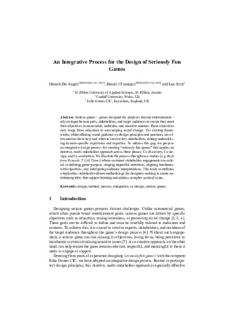 Published in: Bakkes, Sander, Bellotti, Francesco, Dondio, Pierpaolo, Ninaus, Manuel, Wannick, Vanissa and Bucchiarone, Antonio eds.