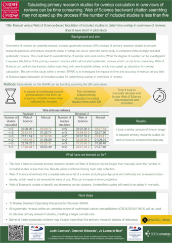 Manual versus Web of Science-based tabulation of included studies to determine overlap in overviews of reviews: does it save time? [Abstract].
