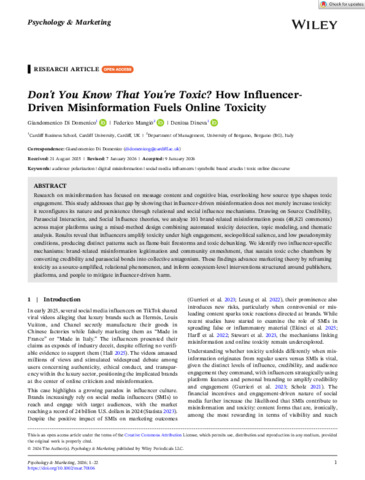 Don’t you know that you’re toxic? How influencer-driven misinformation fuels online toxicity.