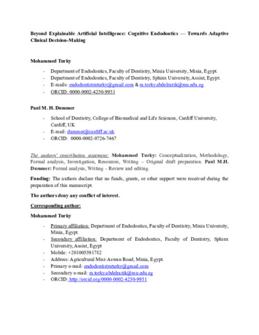 Beyond explainable artificial intelligence: cognitive endodontics—towards adaptive clinical decision‐making.