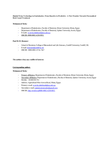 Digital twins technology in endodontics: From reactive to predictive - A new frontier towards personalized