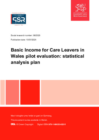 Basic Income for Care Leavers in Wales pilot evaluation: statistical analysis plan.