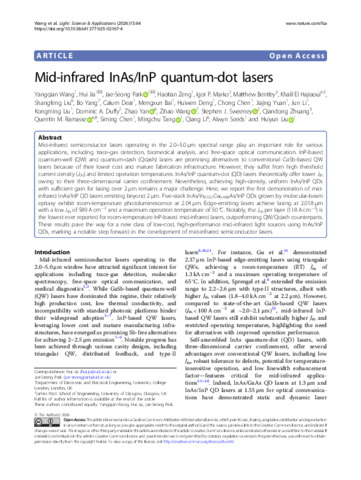 Wang, Yangqian, Jia, Hui, Park, Jae-Seong, Zeng, Haotian, Marko, Igor P., Bentley, Matthew, Hajraoui, Khalil El, Liu, Shangfeng, Yang, Bo, Dear, Calum, Bai, Mengxun, Deng, Huiwen, Chen, Chong, Yuan, Jiajing, Li, Jun, Liu, Kongming, Duffy, Dominic A., Yan, Zhao, Wang, Zihao, Sweeney, Stephen J., Zhuang, Qiandong, Ramasse, Quentin M., Chen, Siming, Tang, Mingchu, Li, Qiang ORCID: https://orcid.org/0000-0002-5257-7704, Seeds, Alwyn and Liu, Huiyun