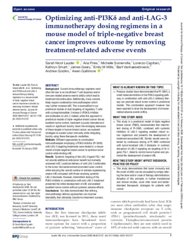 Optimising anti-PI3Kd and anti-LAG-3 immunotherapy dosing regimens in a mouse model of triple negative breast cancer improves outcome by removing treatment-related adverse events.