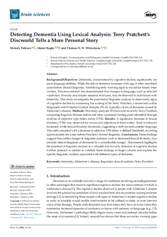 Detecting dementia using lexical analysis: Terry Pratchett's discworld tells a more personal story.