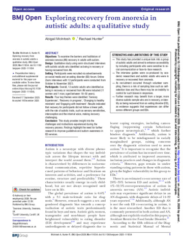 Exploring recovery from anorexia in autistic adults: a qualitative study.