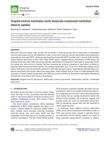Targeted memory reactivation elicits temporally compressed reactivation linked to spindles.