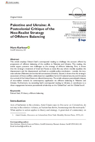 Palestine and Ukraine: A postcolonial critique of the neo-realist strategy of offshore balancing.