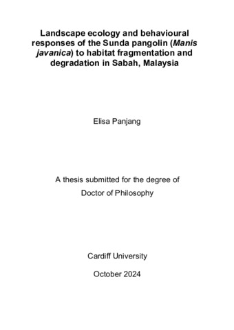 Landscape ecology and behavioural responses of the Sunda pangolin (Manis javanica) to habitat fragmentation and degradation in Sabah, Malaysia.
