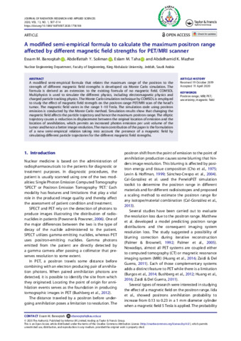 A modified semi-empirical formula to calculate the maximum positron range affected by different magnetic field strengths for PET/MRI scanner.