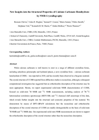 New insights into the structural properties of calcium carbonate hemihydrate by NMR crystallography.