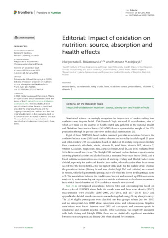 Editorial: Impact of oxidation on nutrition: source, absorption and health effects [Editorial].