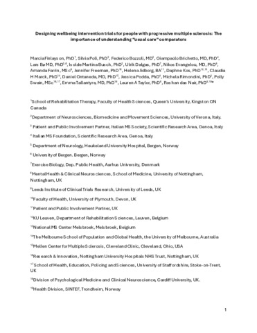 Designing well-being intervention trials for people with progressive multiple sclerosis: the importance of understanding usual care comparators [Editorial].