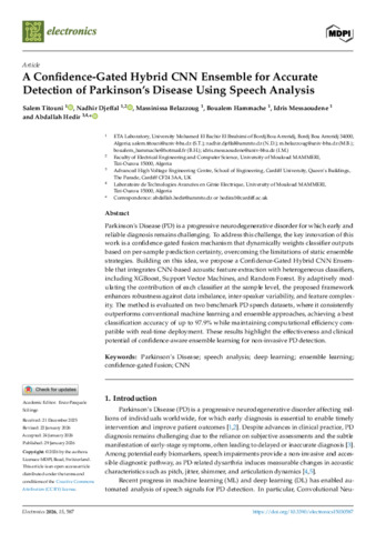 A confidence-gated hybrid CNN ensemble for accurate detection of Parkinson's disease using speech analysis.