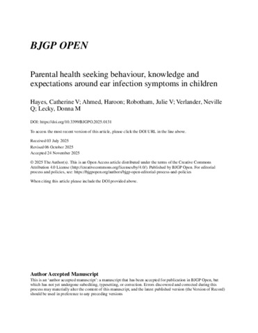 Parental health seeking behaviour, knowledge and expectations around ear infection symptoms in children.