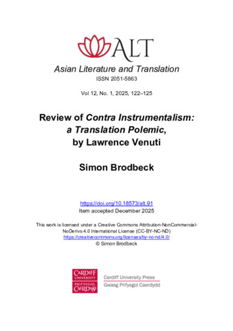 Review of a book entitled Contra Instrumentalism: a Translation Polemic, by Lawrence Venuti (University of Nebraska Press, 2019)