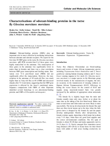Characterisations of odorant-binding proteins in the tsetse fly Glossina morsitans morsitans.