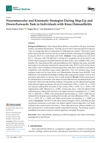 Neuromuscular and kinematic strategies during step-up and down-forwards task in individuals with knee osteoarthritis.