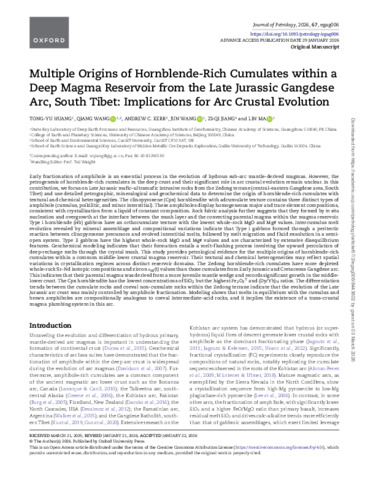 Multiple origins of hornblende-rich cumulates within a deep magma reservoir from the Late Jurassic Gangdese arc, south Tibet: implications for arc crustal evolution.