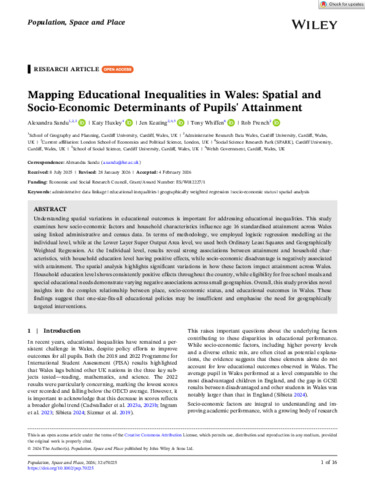 Mapping educational inequalities in Wales: spatial and socio‐economic determinants of pupils' attainment.