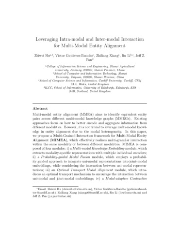 Leveraging intra-modal and inter-modal interaction for multi-modal entity alignment.