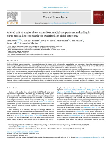 Altered gait strategies show inconsistent medial compartment unloading in varus medial knee osteoarthritis awaiting high tibial osteotomy.